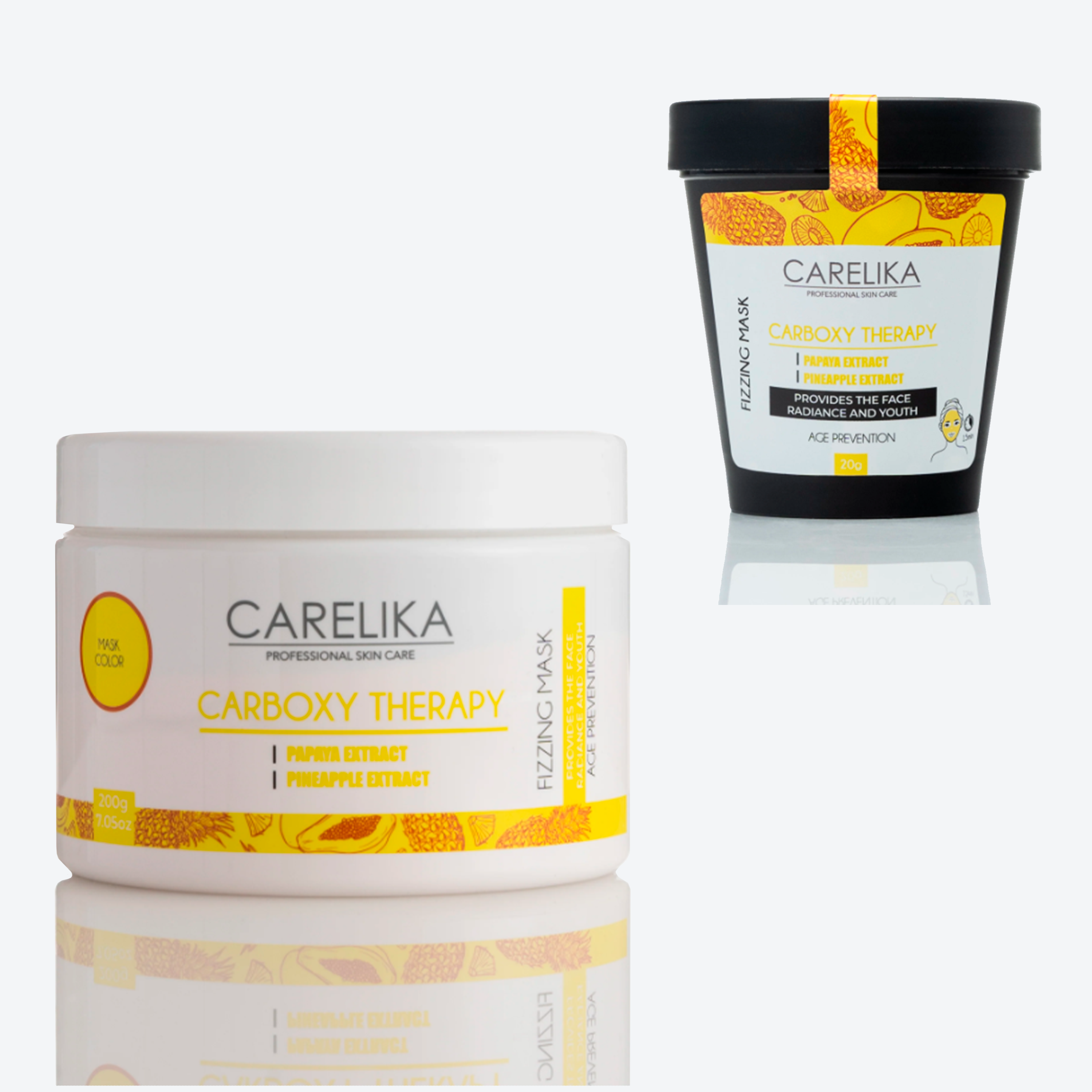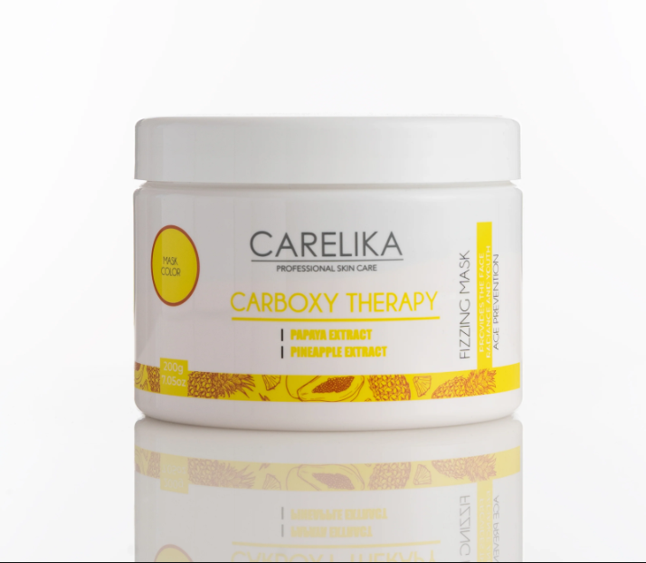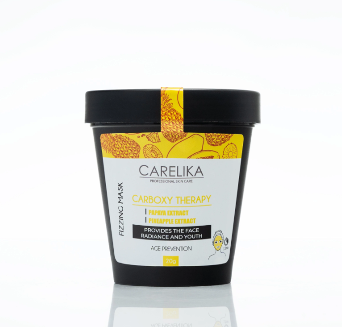 Уникальная и инновационная пенящаяся маска для карбокситерапии от CARELIKA, предназначена для быстрого и легкого омоложения. Маска - карбокситерапия образует воздушную пену, которая помогает достичь ровного тона кожи, делая ее мягкой и гладкой. Содержащиеся в формуле бикарбонат и цитраты реагируют с водой, создавая пузырчатый эффект и образуя гладкую и воздушную пену, которая глубоко очищает поры и придает ощущение свежести. Экстракты папайи и ананаса, содержащие ферменты, удаляют омертвевшие клетки, улучшают обменные процессы в коже, омолаживают клетки и имеют антиоксидантный эффект. Кроме того, эти ферменты обладают противовоспалительным действием, улучшают синтез коллагена, повышают упругость кожи и придают ощущение свежести. Пептид Perfection-3 омолаживает и придает коже сияние, улучшая микроциркуляцию в глубоких слоях тканей и насыщает клетки кислородом.
