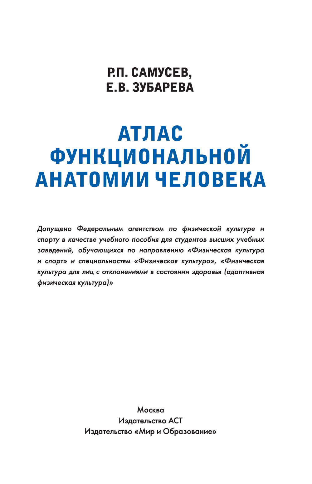 Атлас рекомендован студентам высших учебных заведений физической культуры и спорта, а также может быть полезен студентам медицинских и биологических факультетов других вузов. Книга будет интересна всем, кто хочет самостоятельно изучить строение человеческого тела.