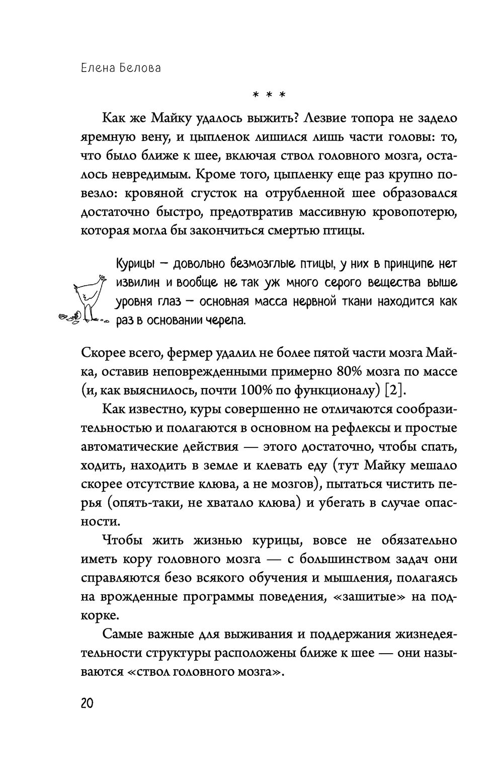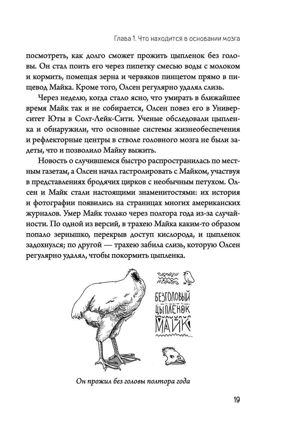 1,5 килограмма – таков средний вес человеческого мозга. Однако эта "малютка" в нашей голове потребляет 20% всей энергии, которую мы получаем в течение дня. С чего бы такое расточительство, когда функционирование других органов нашего тела не менее важно для полноценной жизни? Разобраться в этом, а также других вопросах, решила биохимик, биоинформатик и нейрофизиолог Елена Белова. Вместе с ней вы посмотрите на мозг с самых разных сторон и узнаете, пожалуй, все, что известно о нем ученым на данный момент. Можно ли выжить без головы? Почему люди с феноменальной памятью – аутисты? Какая из частей мозга отвечает за распознавание эмоций и что будет, если ее отключить? Почему мы отвлекаемся и ленимся (и можно ли обойтись без этого)? Итак, вы готовы отправиться в путешествие по извилистым дорожкам нашего "бортового компьютера"?