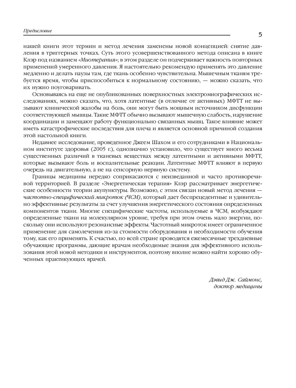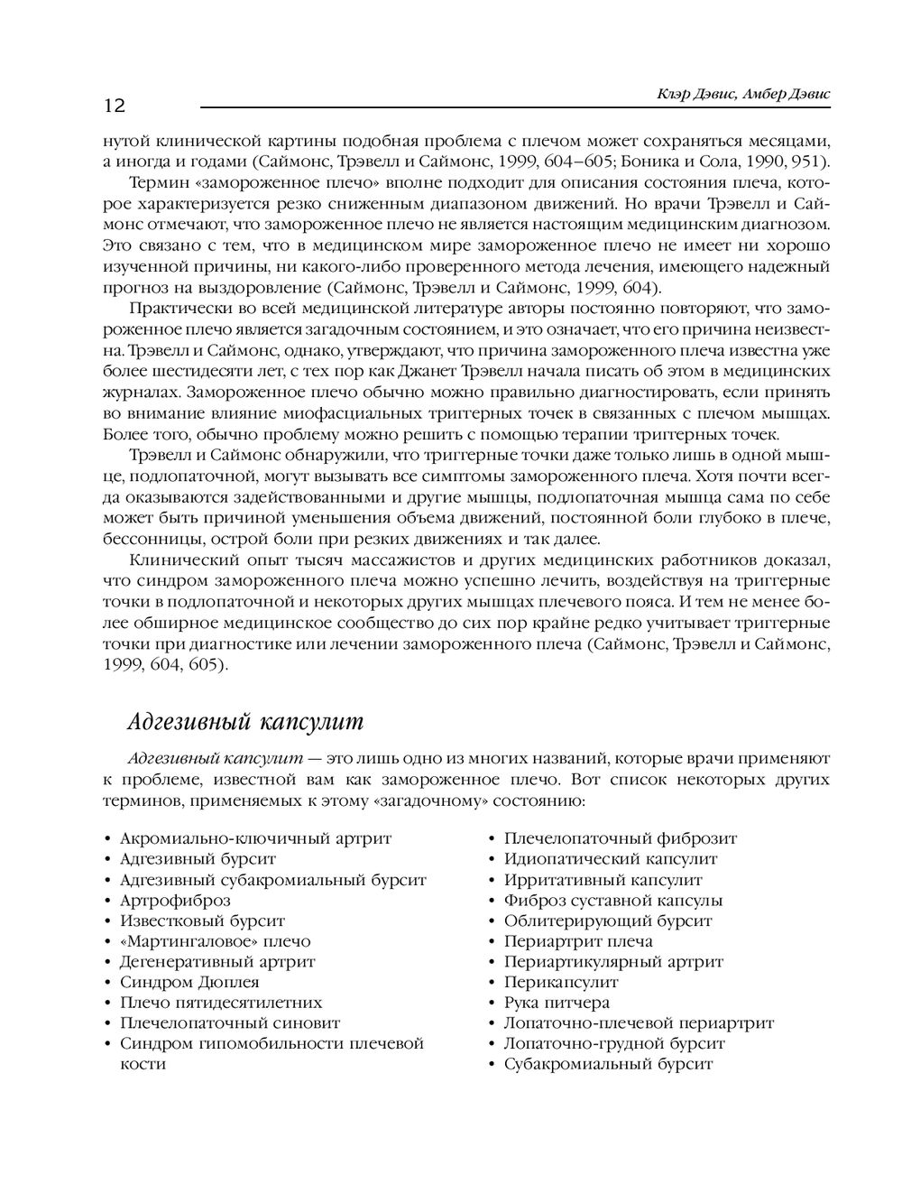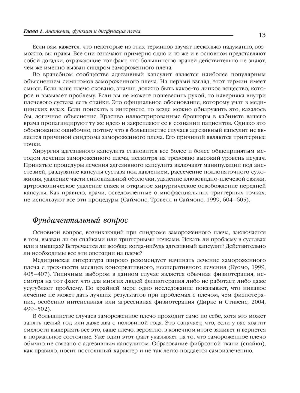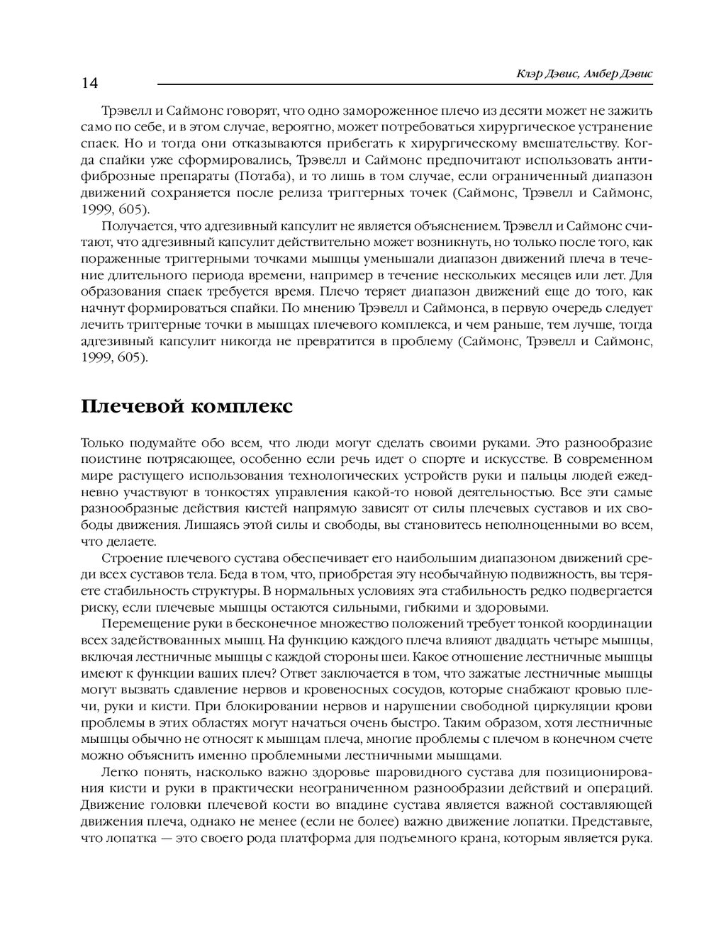 Триггерная точка – это просто крошечный пучок волокон внутри мышцы, который находится в состоянии сильного сокращения, напоминая что-то вроде "узла". Такой маленький узел может как причинять непрекращающуюся боль, так и существовать незаметно, вообще не причиняя боли, если на него не надавить. Однако обычно триггерная точка незаметно передает боль куда-то еще. Эта книга посвящена терапии триггерных точек, ответственных за развитие различных болевых синдромов в области шеи и плеч. Массажи и самомассажи, а также методики поиска истинных источников боли, делают издание незаменимым как для специалистов движения, так и для обычных людей.