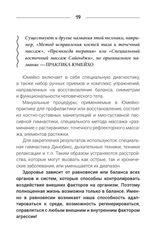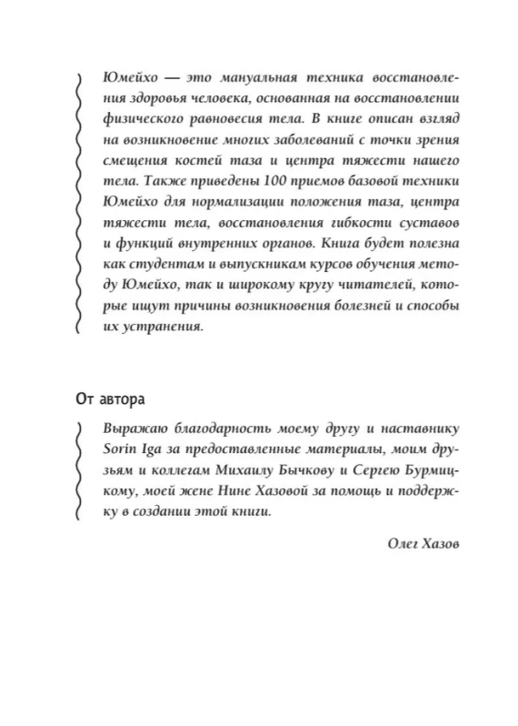 Книга подойдет для изучающих и практикующих Юмейхо, а также для массажистов, мануальных терапевтов, остеопатов и тех, кто интересуется темой сохранения и восстановления здоровья.