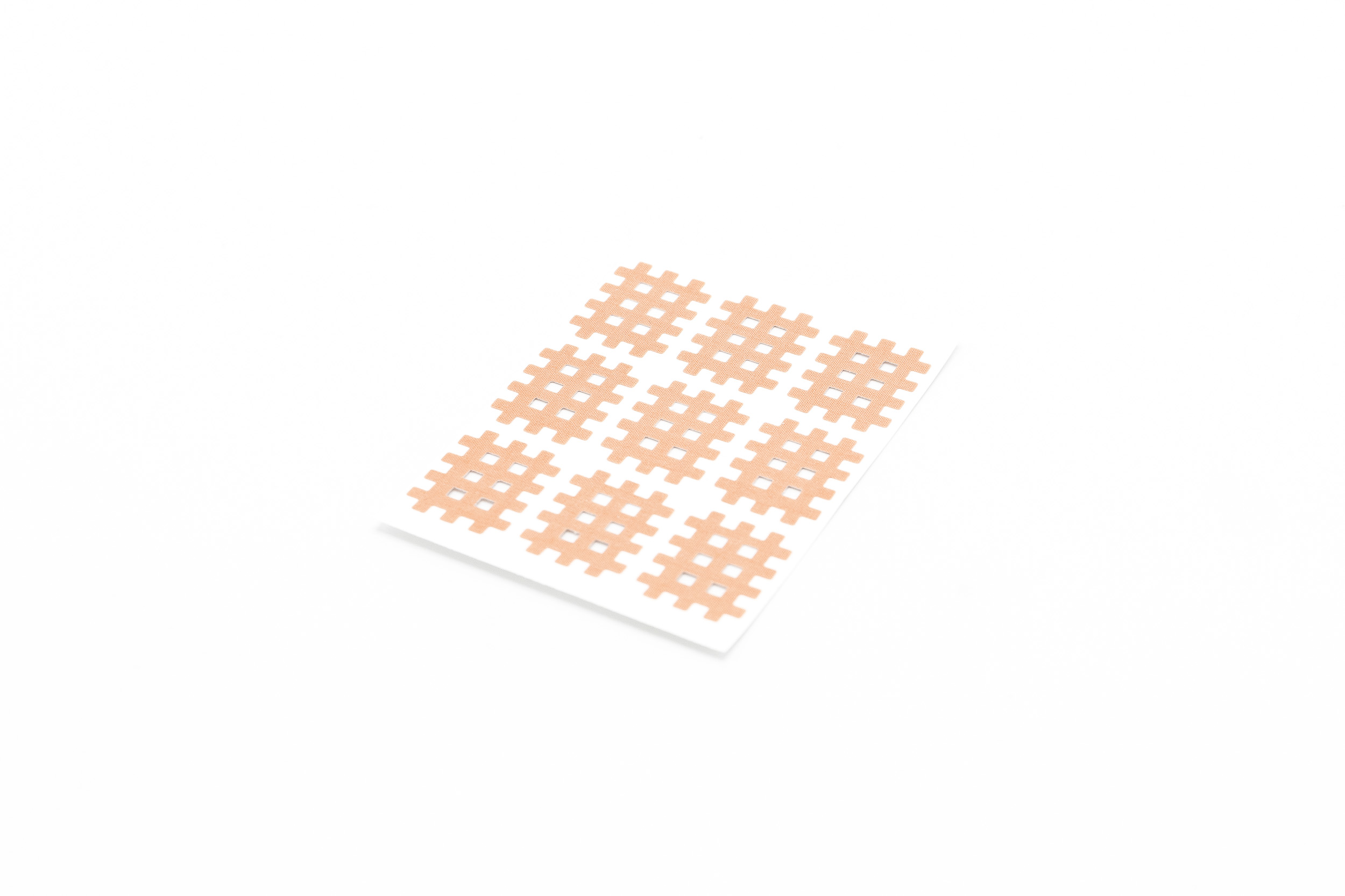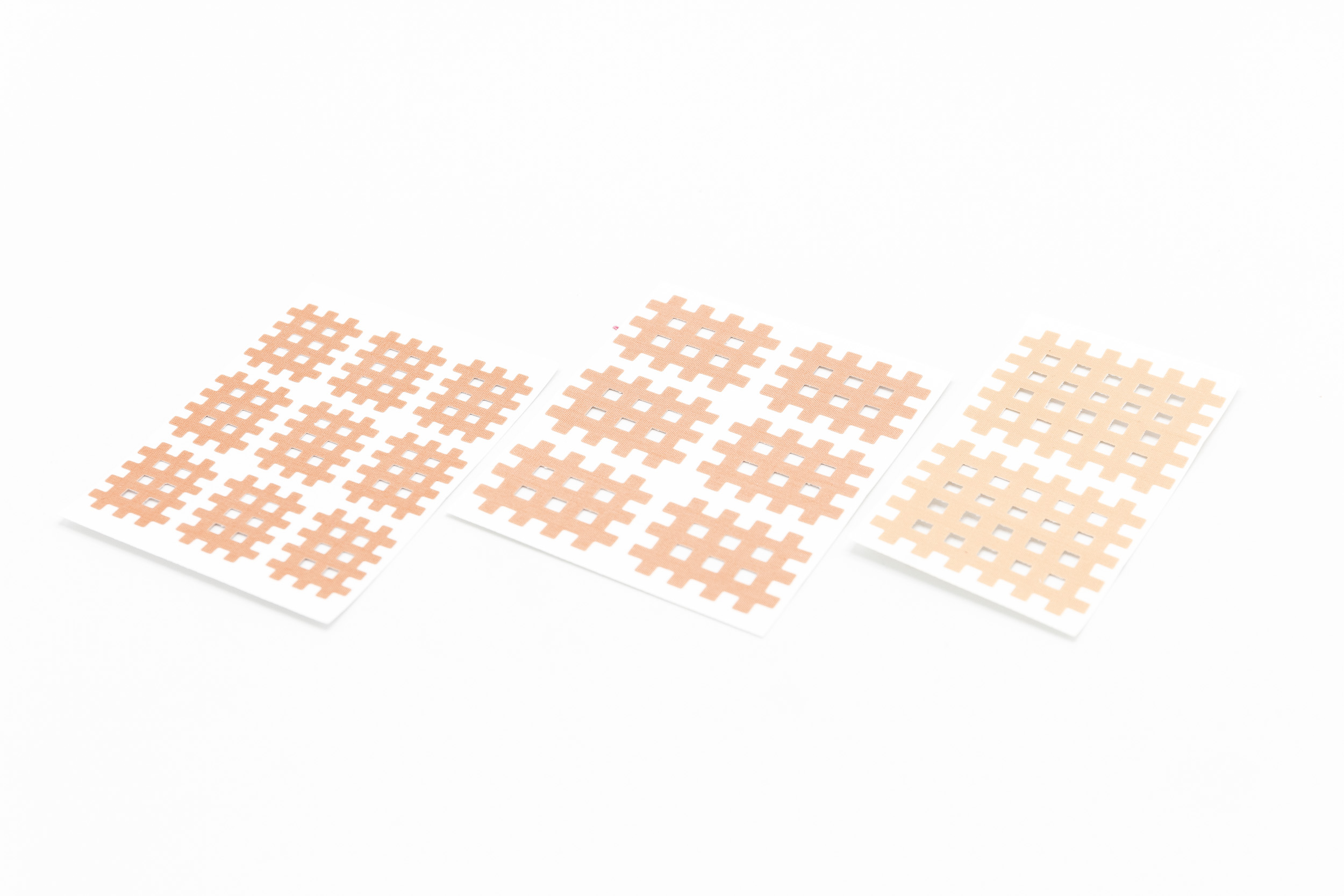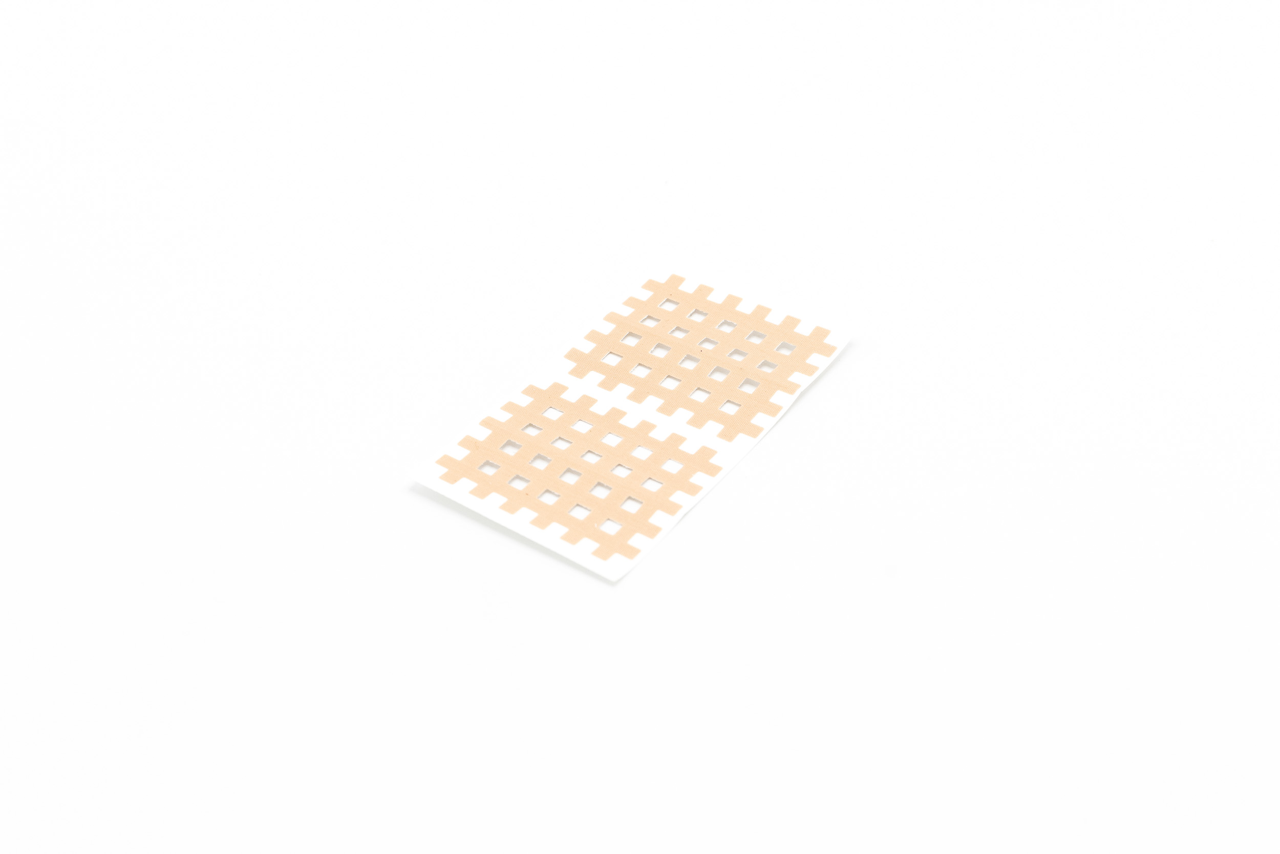 Кросс-тейпы – особый тип гипоаллергенной клейкой ленты в форме решетки для снятия болевого синдрома, устранения синяков и отеков. Накладываются на акупунктурные и триггерные точки либо на места локализации боли. Помогают при боли в мышцах и суставах, боли при менструации, снимают отеки (в том числе на лице, что используется в косметологии).