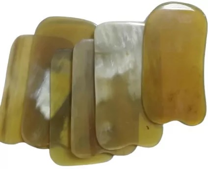 Скребок Гуаша из рога буйвола имеет оттенки от светло-коричневого до черного.