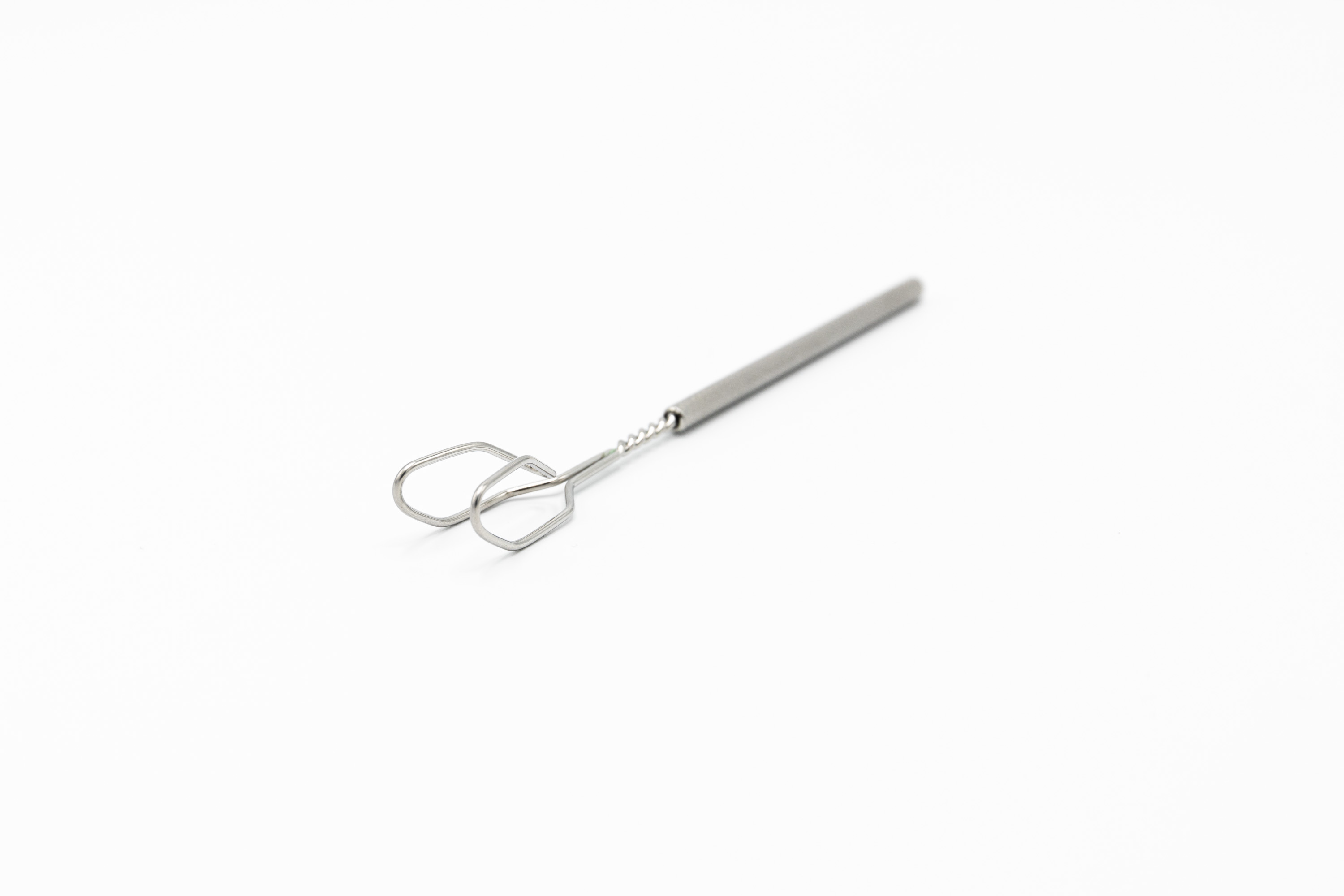 Зонд «Собачка» может служить для обкалывания языка во время выполнения логопедического массажа. Этим зондом вызывается поза «горка». Может быть использован для логопедического массажа верхней продольной мышцы, боковых краев языка. Удобен для постановки звука С.