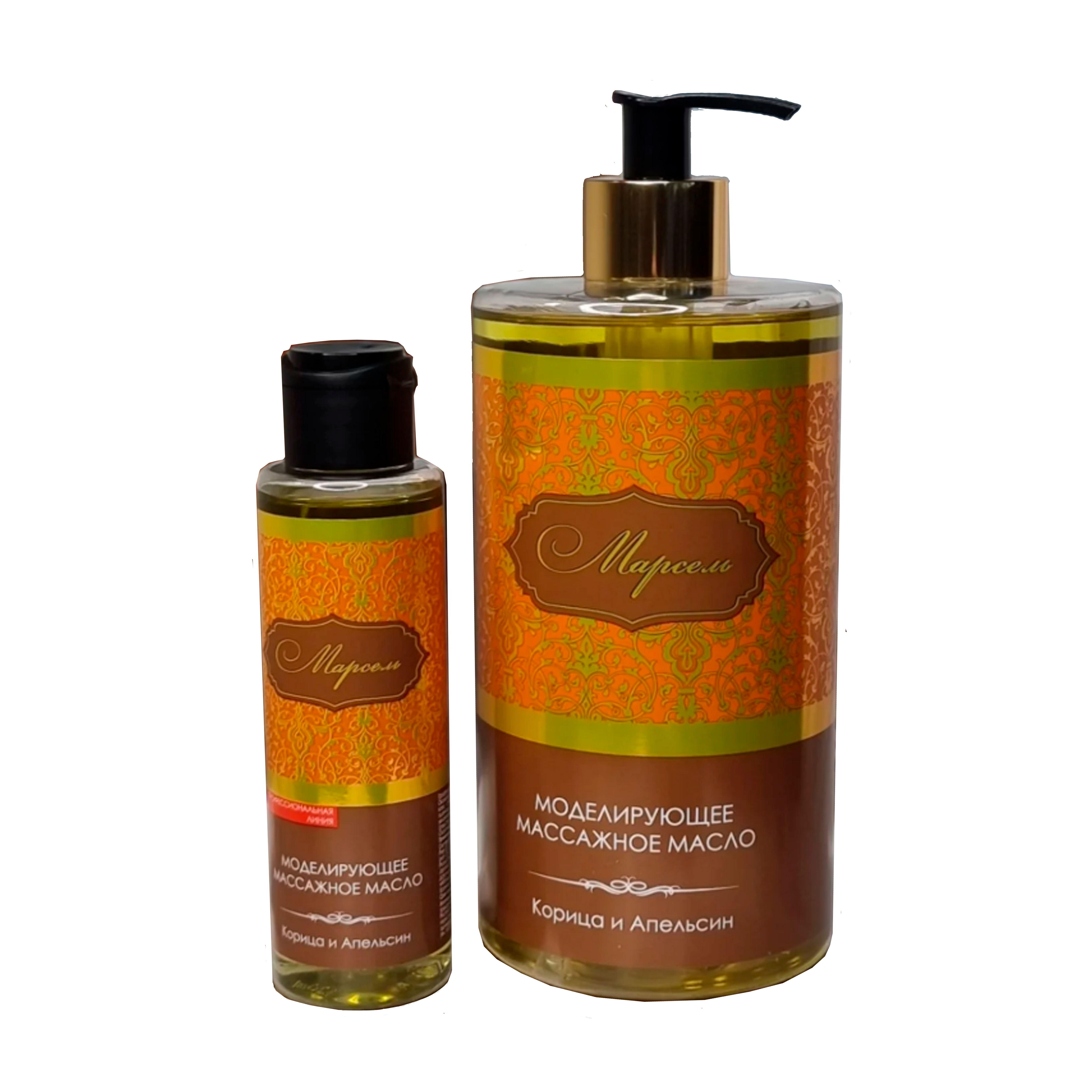 Моделирующее массажное масло с эфирными маслами апельсина и корицы.