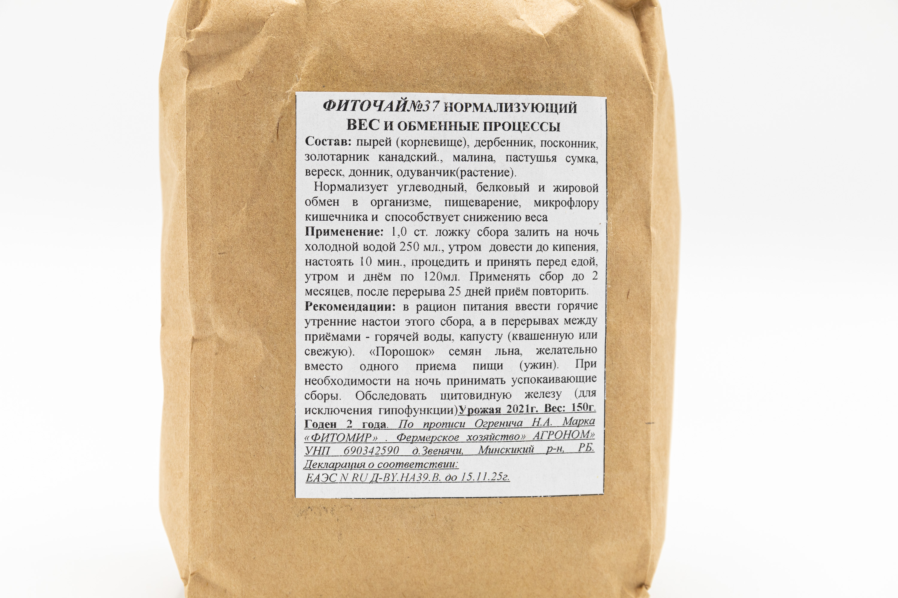 Сбор нормализующий вес и обменные процессы Фиточай №37